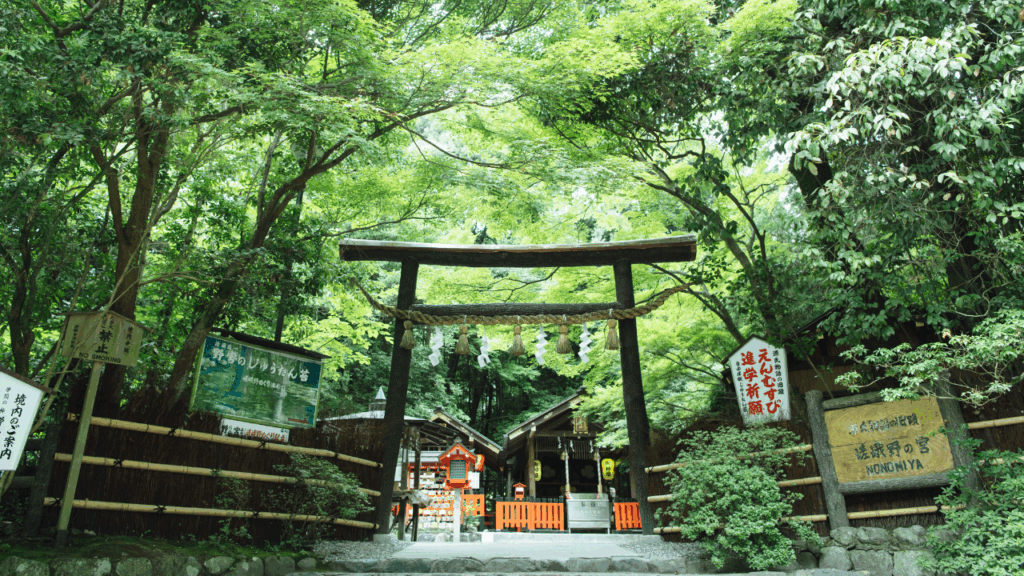 源氏物語の舞台としても知られる、美しい黒木鳥居と苔庭が印象的な神社です。
