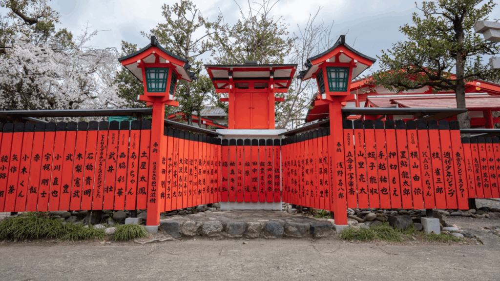鮮やかな朱塗りの玉垣が並び、多くの著名人も訪れる人気の神社です。